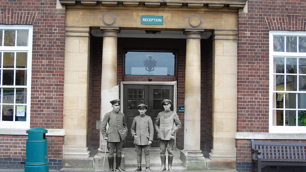Image: Three German officers outside Kingston House in Sutton Bonnington, courtesy of WWWinter Ltd