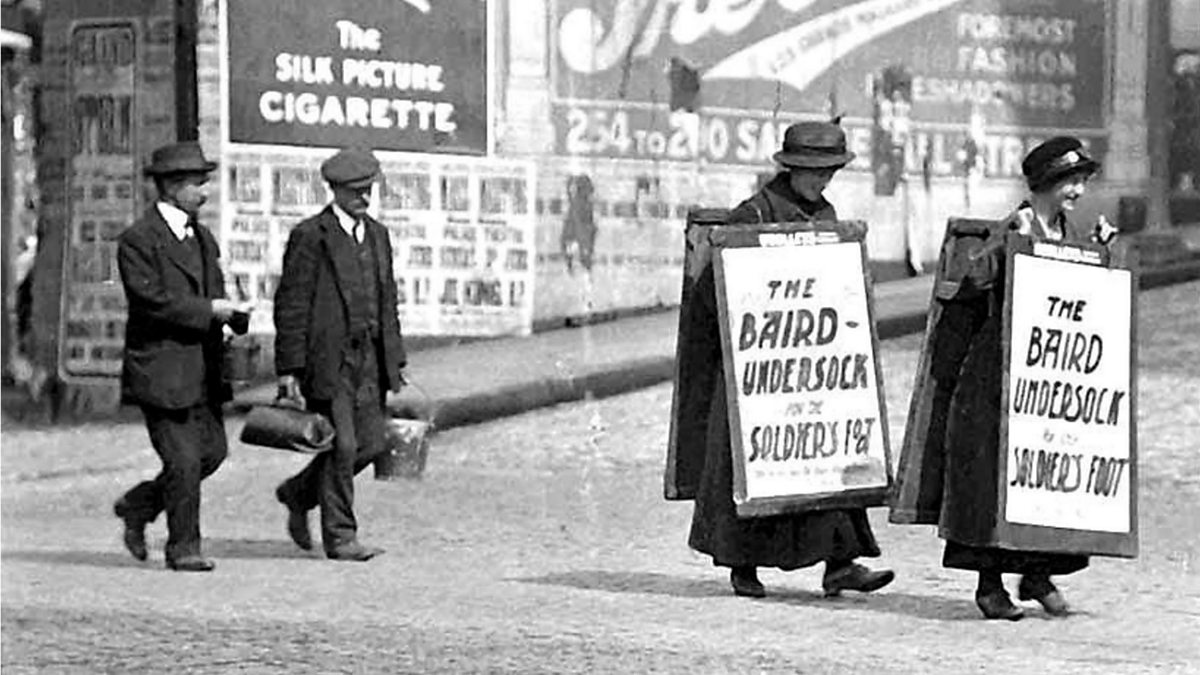 Business started from a one-room office in St Vincent Street in Glasgow and Stewart Noble, Chairman of the Helensburgh Heritage Trust describes some of the imaginative ways that John Logie Baird marketed his product. One was to send sandwich board women out of the streets, a job that until then had only been for men.