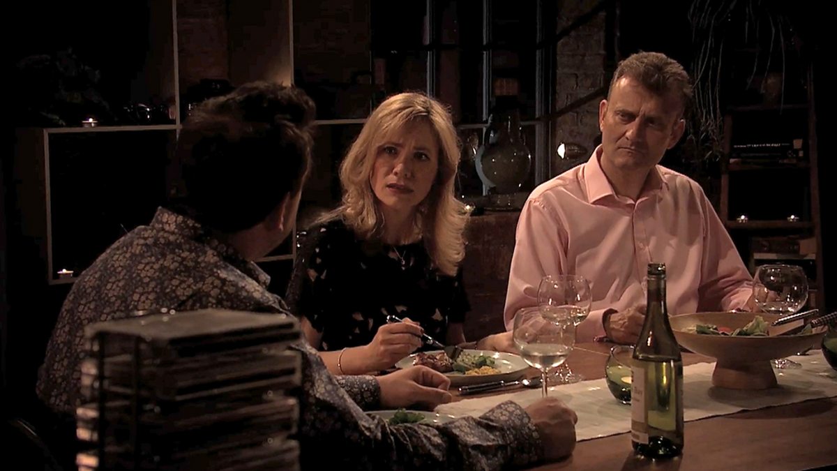 Lee swaps culinary tips with Lucy's new neighbours, Anna and Toby.