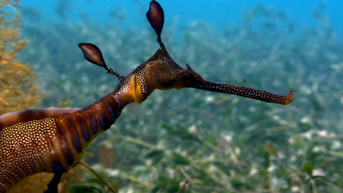 The tiny fins of a sea dragon beat frantically to prevent the current sweeping it away. At the beginning of spring, sea dragons begin their courtship, dancing in pairs in the evening light. In a graceful duet, each partner mirrors the actions of the other and this continues well into the dark night. Two months later, the result of their courtship is revealed. The male now carries rows and rows of eggs embedded on his tail. The female passed them over to him on the night of the dance. By carrying them with him he keeps them safe from predators until they are ready to hatch. In the calm of a summer morning, with its yolk sack still attached, a baby sea dragon is born. In the weed bed are older youngsters, already able to feed themselves. After being well looked after by their father, the new babies must now make their own way in the world.