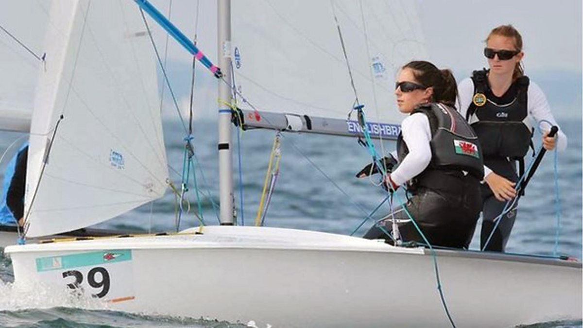 Ifan yn sgwrsio gyda'r hwylwraig ifanc o Fethesda, Mari Davies