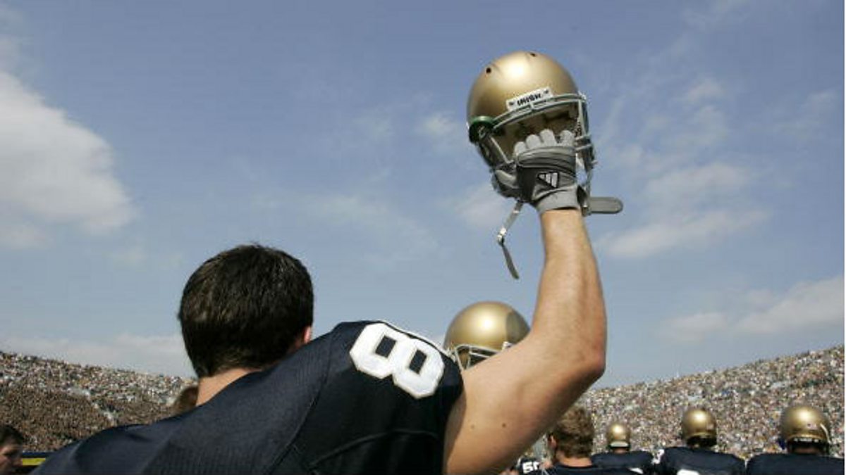 Photo : An American footballer holds up his helmet (Credit: Joe Robbins/Getty Images)