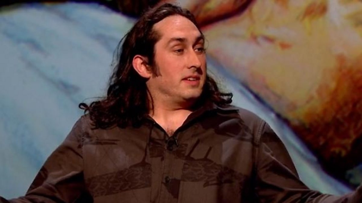 Sue Perkins and Stephen Fry try to solve the mystery of Ross Noble's marked legs.