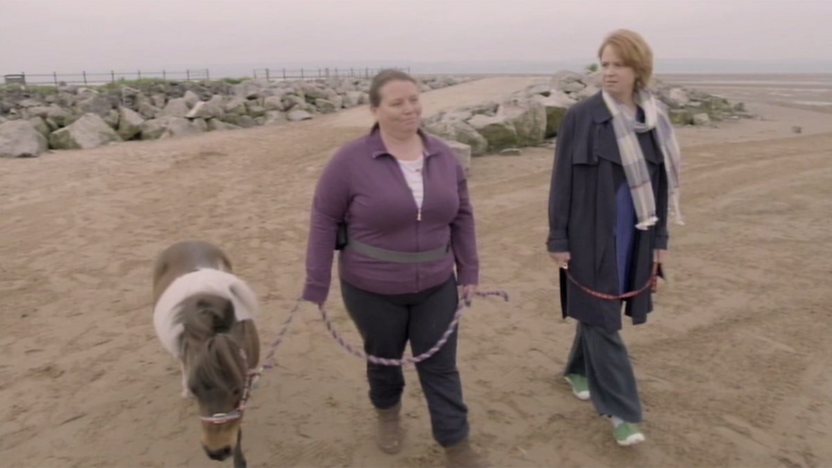 Nana V walks her pony on the beach whilst Naomi tries to control Charlie.