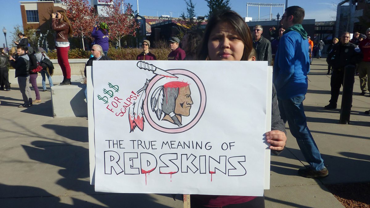 The controversy surrounding the Washington Redskins. It is one of the most popular American football teams but many Native Americans say the name is racist.
