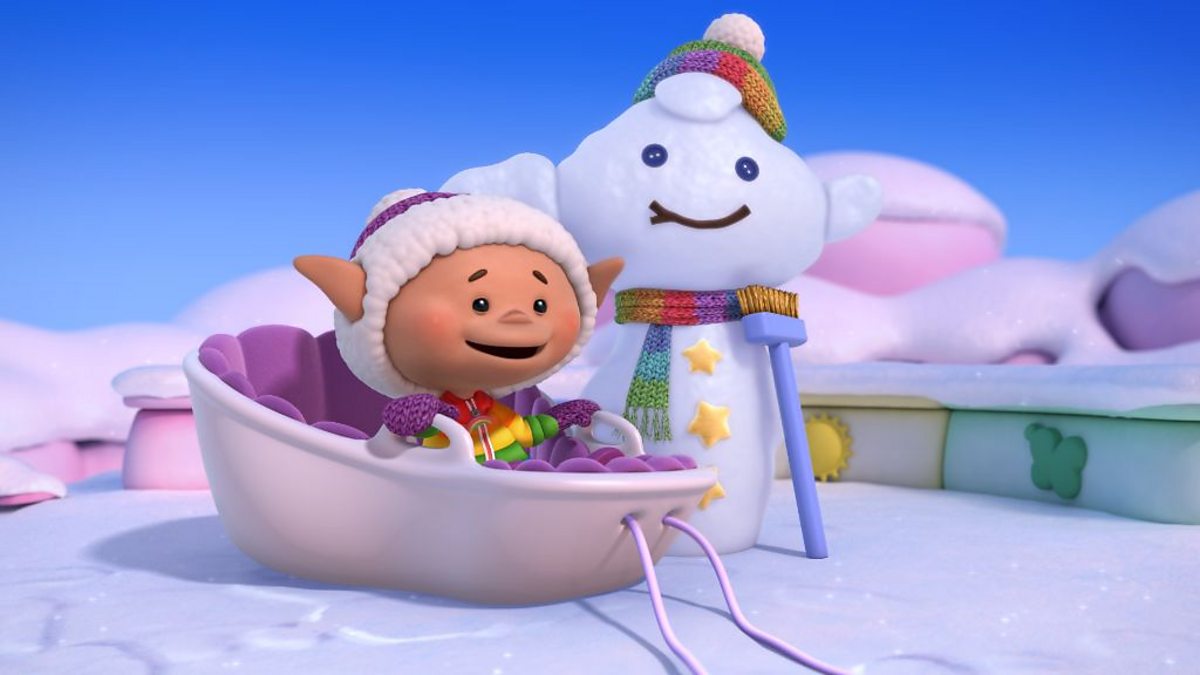 Mae'n ddiwrnod hyfryd o aeaf yn y nen a phawb wrth eu bodd! It's a cold winter's day and everyone is happy.