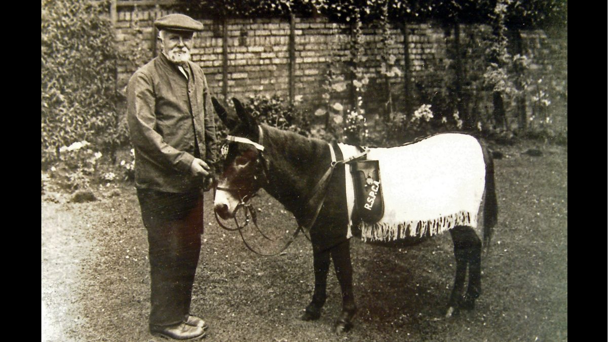 In 1920, at the Peterborough Cattle Market, Jimmy was sold to the RSPCA by a horse dealer called George Walding. And over the next 20 years Jimmy was used in and around Peterborough to raise funds for the charity. But Jimmy had something of a colourful back story. It was claimed that this little black donkey had been at the Somme and had become the mascot of the 1st Battalion of the Cameronian Scottish Rifles.