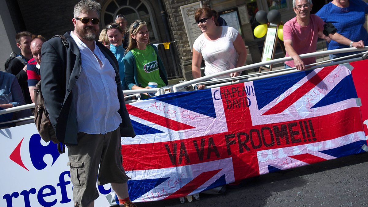 Phill Jupitus, John Cooper Clarke and Johnny Green at the first day of the Tour de France.