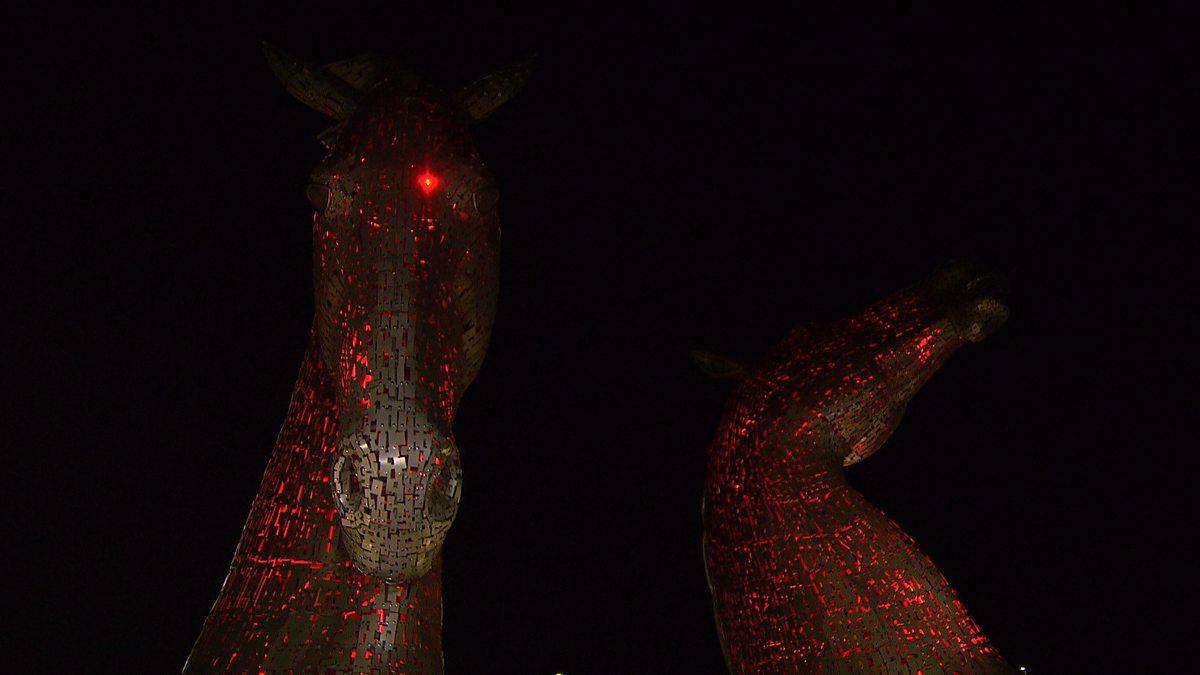 Peoples Ford Boghall & Bathgate Caledonia pipe band perform at The Kelpies - the world's largest equine sculpture which sits in Falkirk and opened to the public in April 2014.