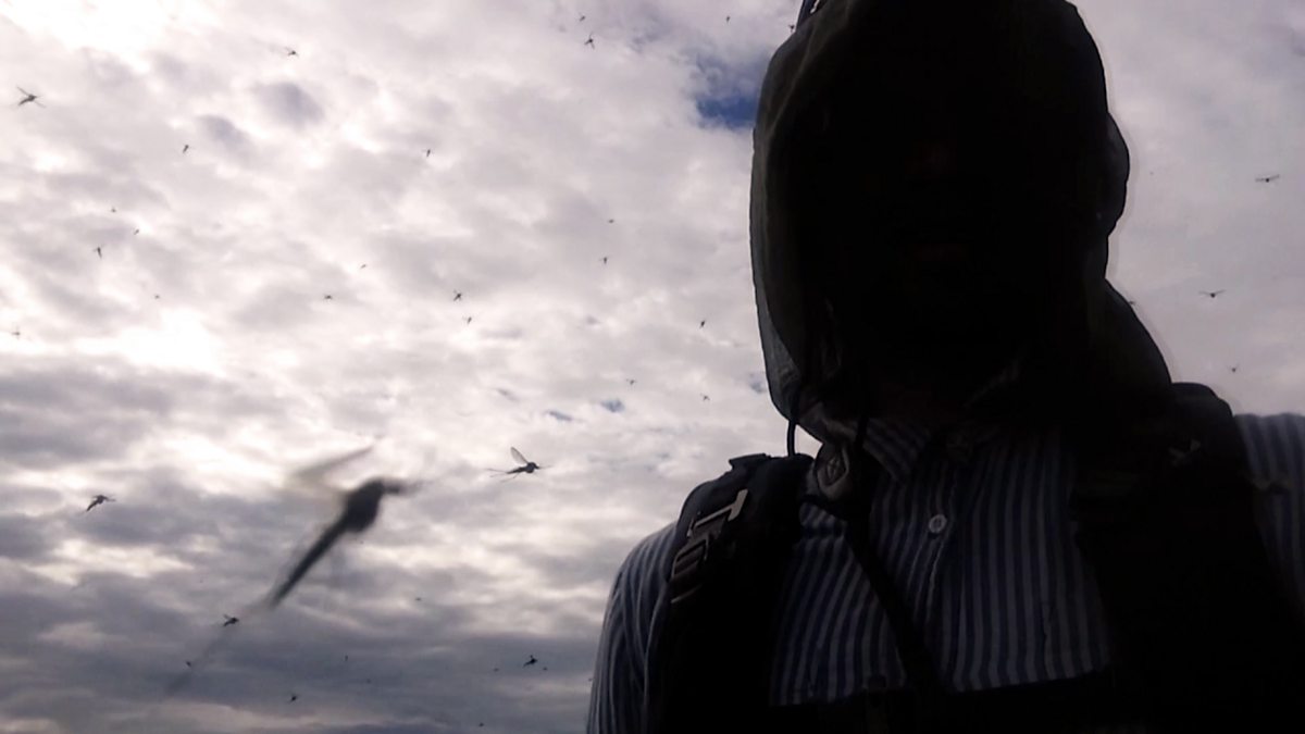 Researcher Joe Tuck captures a scourge of mosquitoes on camera.