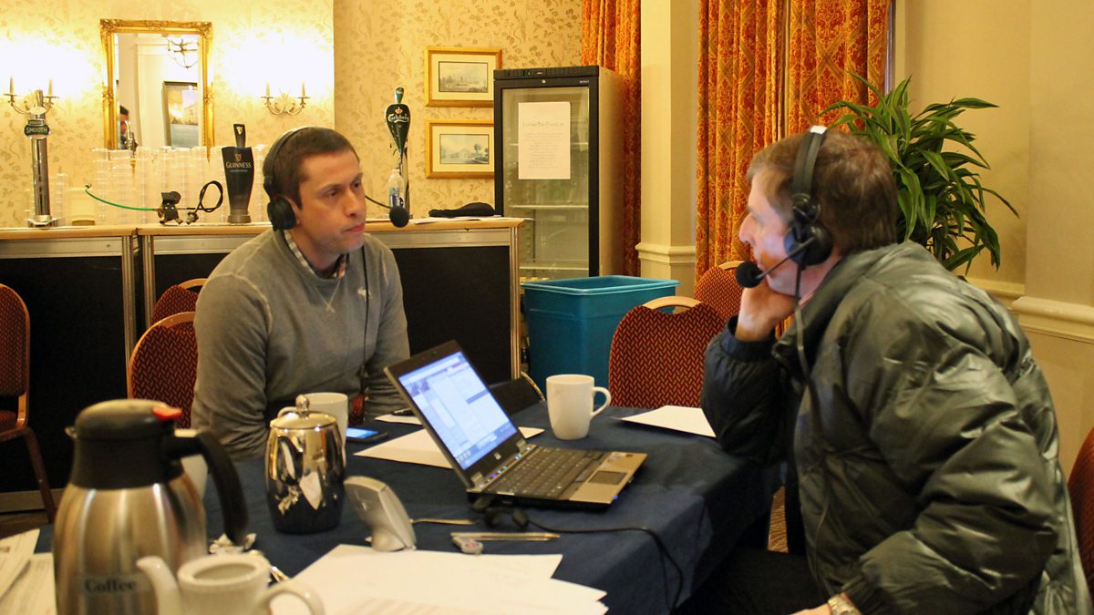 Oriel luniau Rhaglen Dylan Jones yn darlledu o westy'r Angel.