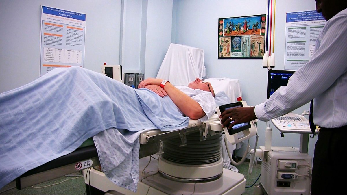 Jon Chase challenges young opera singers in Cardiff to smash glasses with their voices. After measuring the natural frequency of the glass, can the singers match it, and with enough power to smash it? The results are spectacular slowed down 300 times. Smashing things with sound wave isn’t just for fun. In medicine, sound waves can smash painful, hard growths inside the body, called kidney stones.