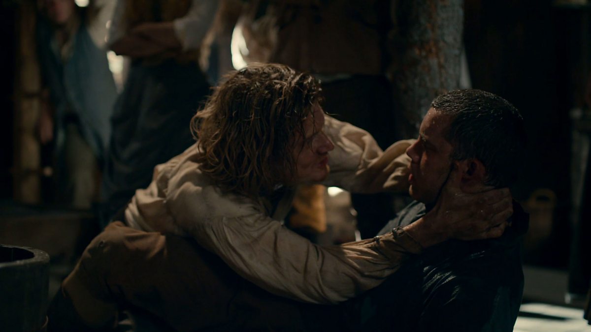 Tommy interrogates Freeman by dunking his head into a barrel of water as Tommy and the other convicts want to know if he has turned informer.
