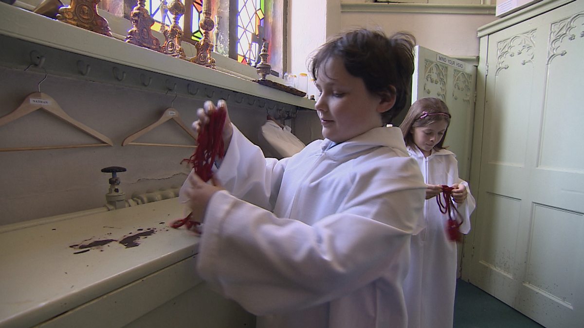 Nathan describes what it is like for him to be an Acolyte in his church, an Anglican congregation in Liverpool. As well as building things and his pet dog, Nathan is keen on his church, and his job is to help with tasks during the service. His special robe, an Alb, is white and he wears it during services with a rope girdle. Nathan talks about Jesus as the ‘Son of God’ and explains his way of using the Bible and praying for God’s guidance or help. The clip introduces the other parts of this programme for 7-11s on Christianity, which pick up all Nathan says in more detail.