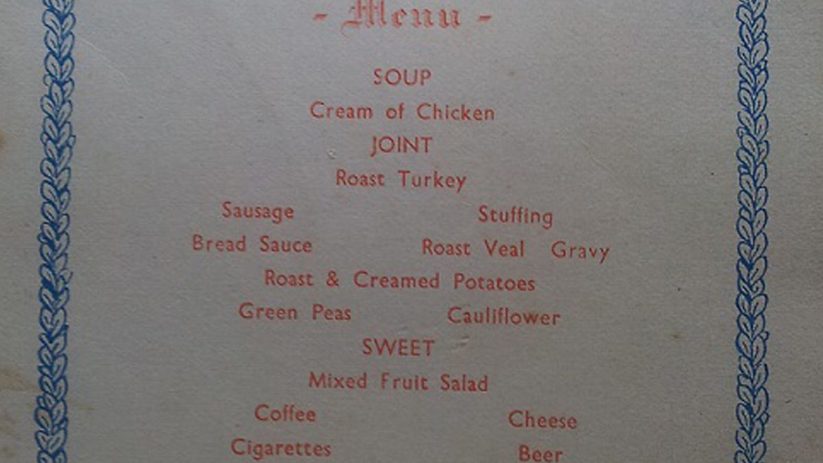 He remembers a joyous atmosphere but most of all the hearty meal they were given. On the menu was soup, roast turkey, sausage, veal, potatoes, peas and a cold beer. It was more than they were used to.