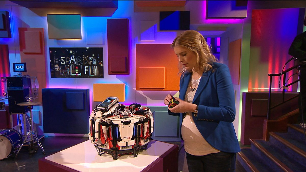 Professor Danielle George demonstrates the world’s fastest Rubik’s cube solver and explains how it works using just a smartphone and lego. The smartphone takes photographs of the cube using it’s built in camera and the software works out the fastest way to solve the cube. The smartphone then sends instructions to the lego arms to tell them which parts of the cube to rotate. The Rubik’s cube solver is a prime example of how electronics in our everyday lives are capable of doing unexpected things.