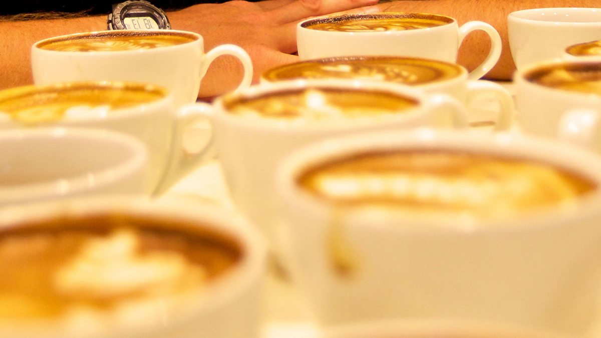 Professional barista Jeremy Challender walks Manuela through the steps.