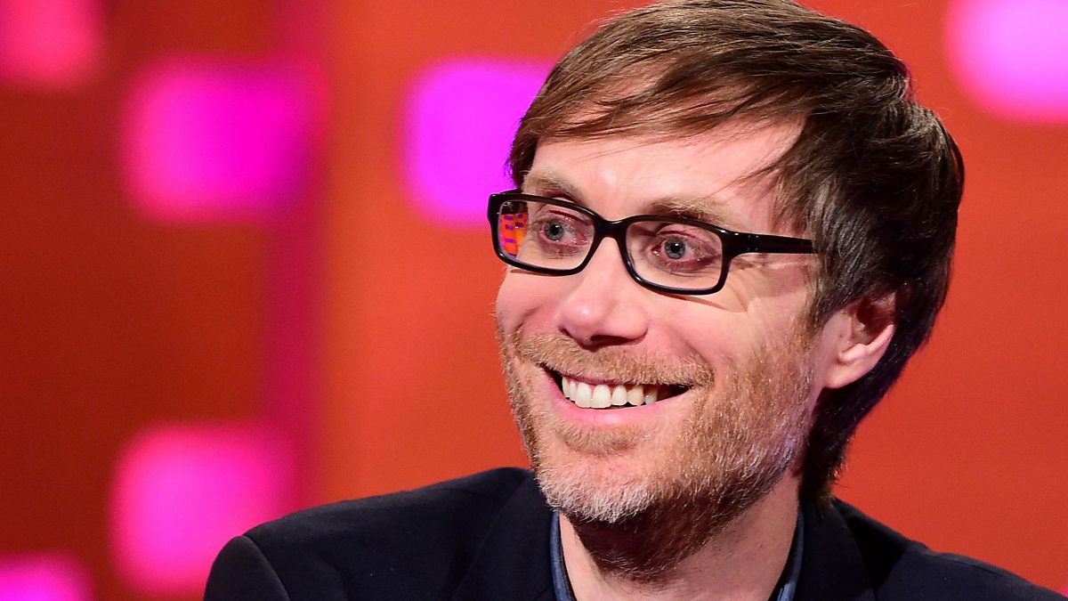 Graham jokes with Stephen Merchant about being too tall for his photo at the Golden Globes