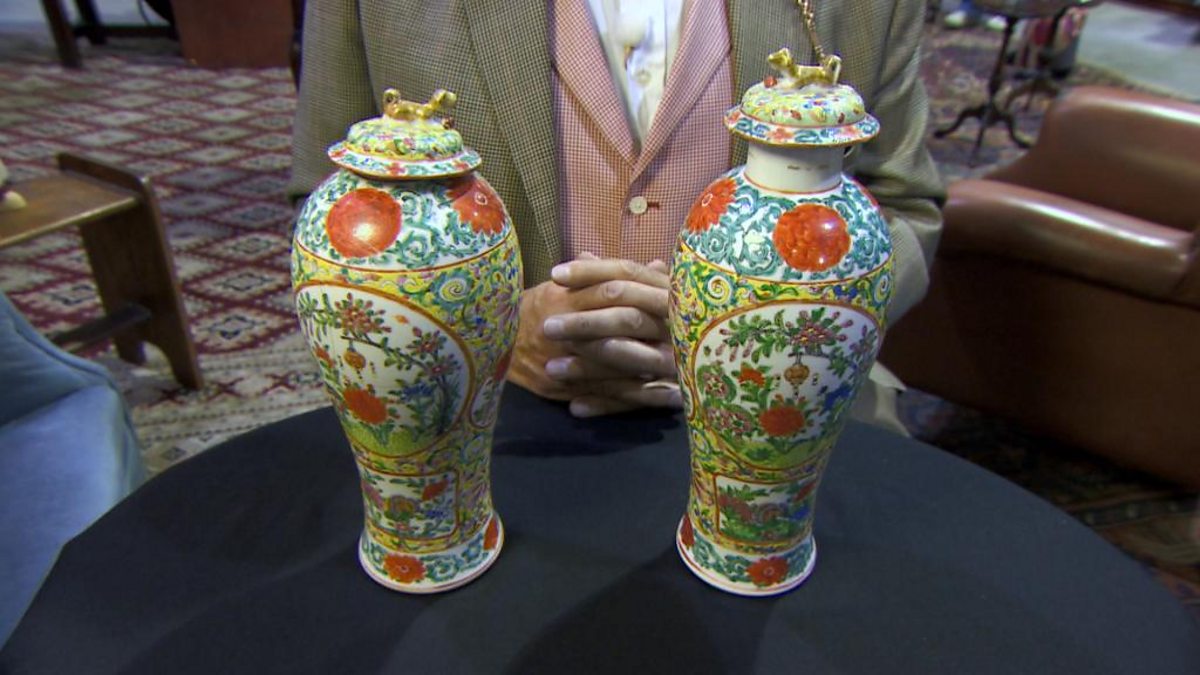 Tim finds two vases, but one was broken. The pair cost £10 together, but one was seriously damaged. On its own, the one in perfect condition would cost £200-£400.