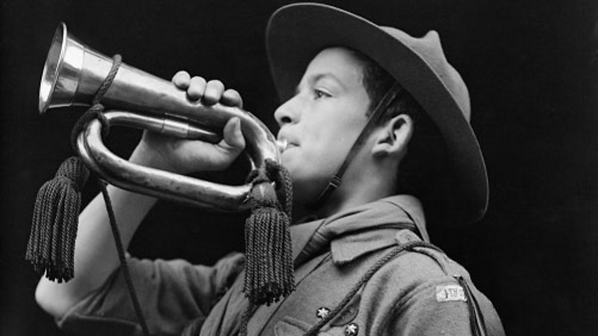 Image: A boy scout blowing the bugle, courtesy of IWM
