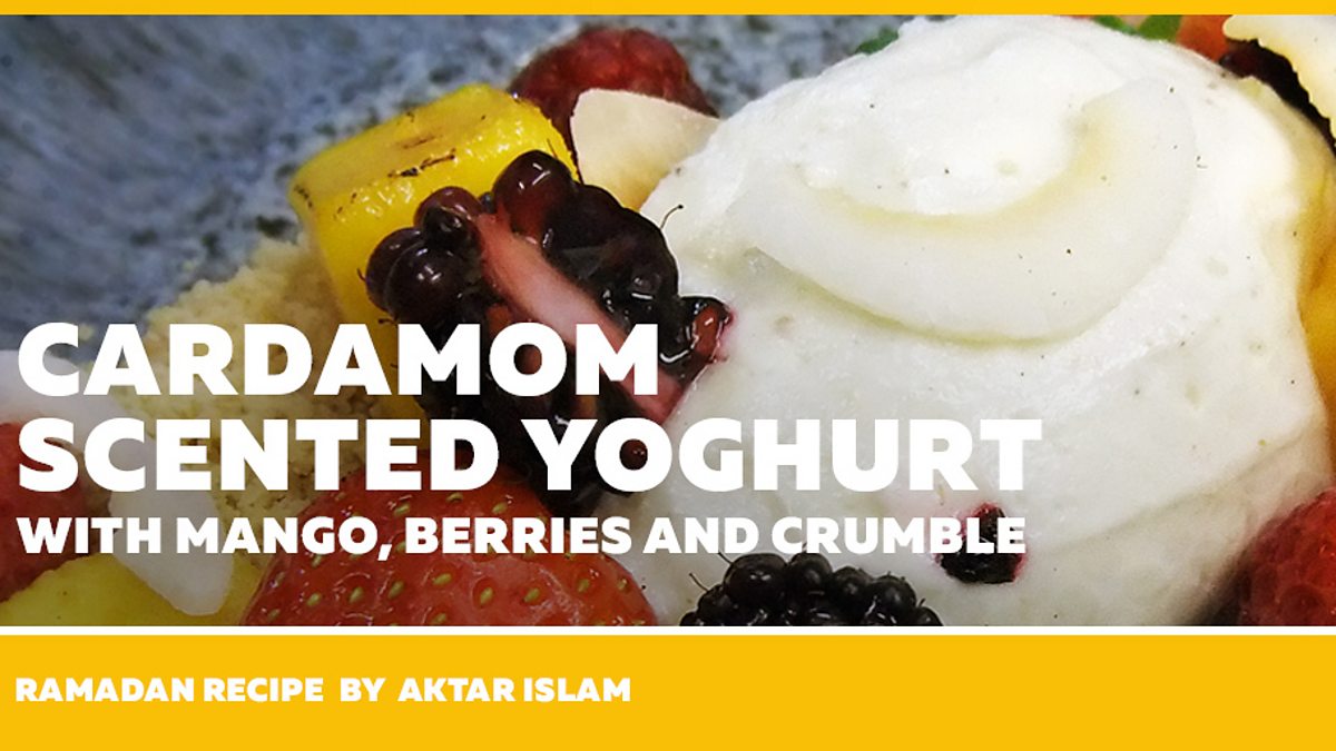 Ramadan Recipe - Cardamom-scented Yoghurt with Mango, Berries and Crumble