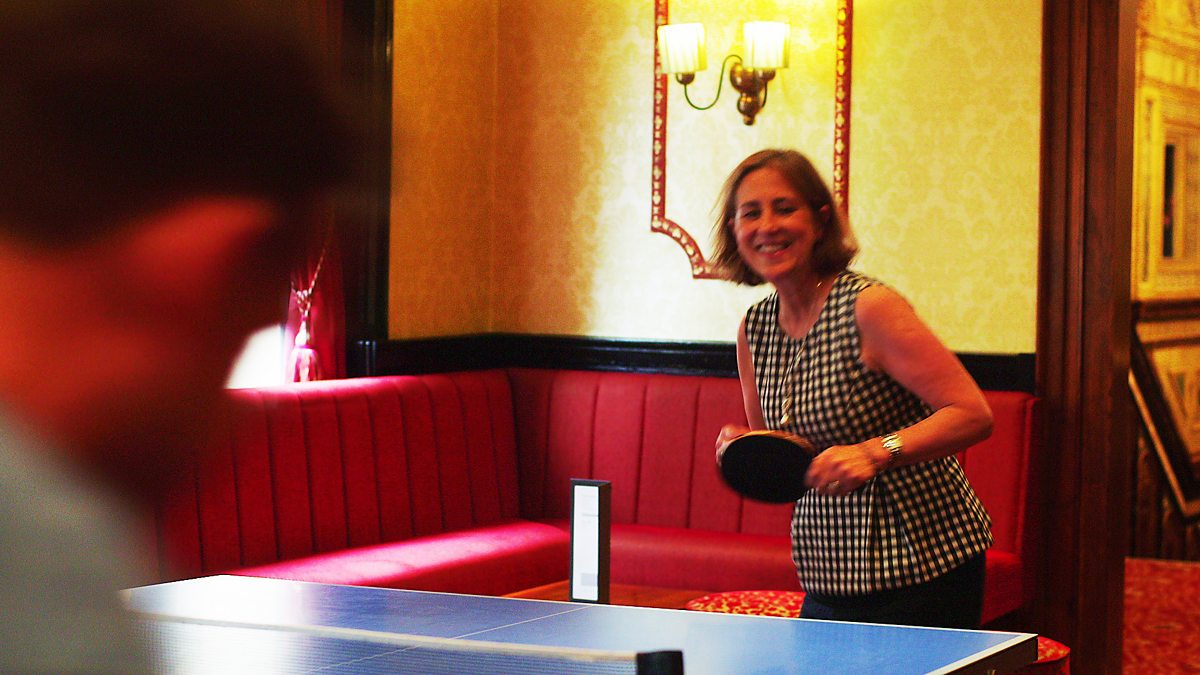Following the interview, Kirsty and Damon let off some steam by playing a few points of ping pong backstage at the Palace Theatre in Manchester. Both are pretty keen players, and Kirsty won their last table tennis challenge hands down.