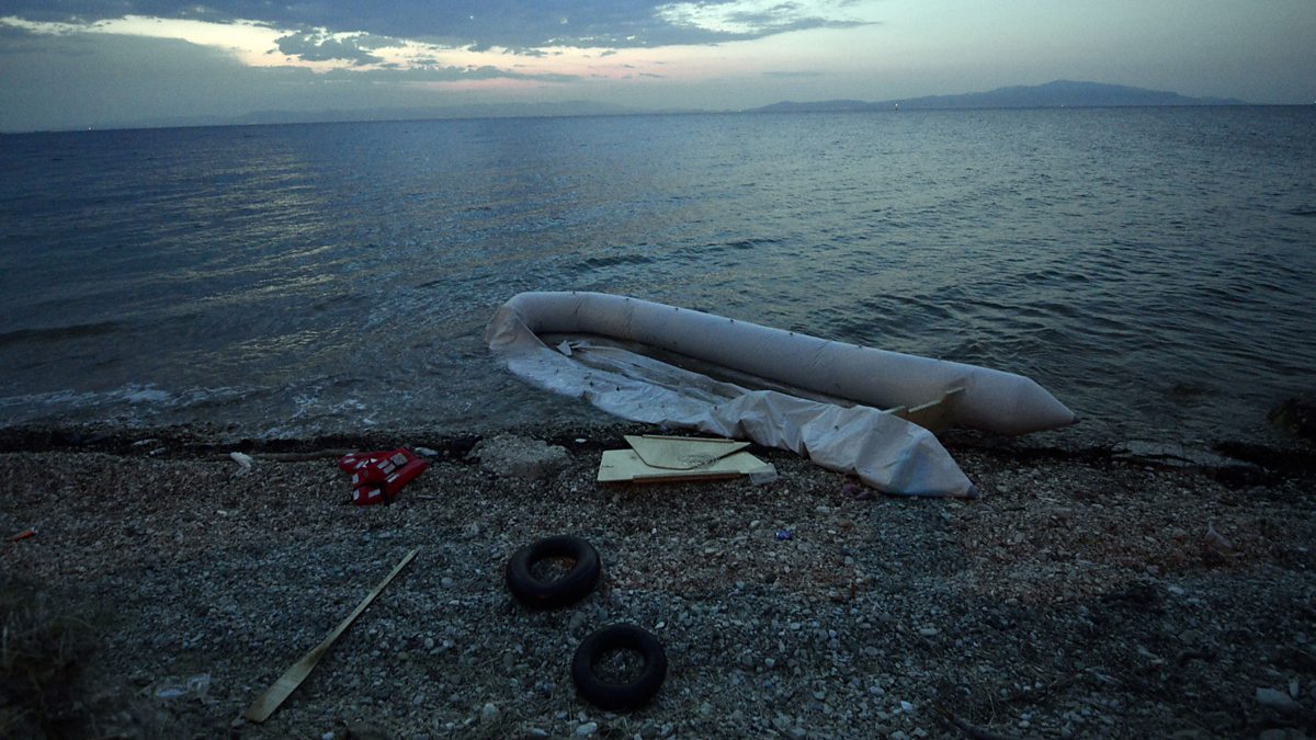 (Photo: A deflated rubber dinghy washed up on a beach. Credit: Getty Images)