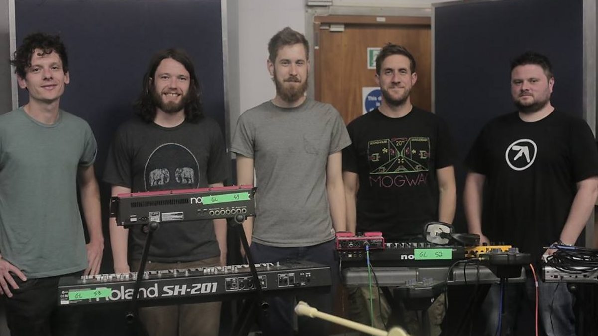 Gwyn yn siarad efo'r grwp o Gaerdydd, Ghostlawns.