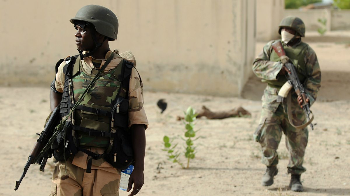 (Photo: Nigerian soldiers patrol close to a camp run by Islamist militant group Boko Haram. Credits: Quentin Leboucher/AFP/Getty Images)