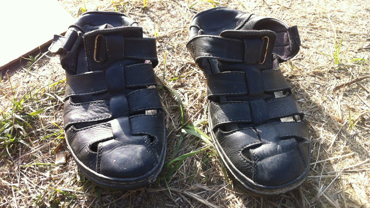 Asked why his cousin's shoes remained by his tent, the man said ‘We do not take his shoes from this place. He lived here. We remember him’.
