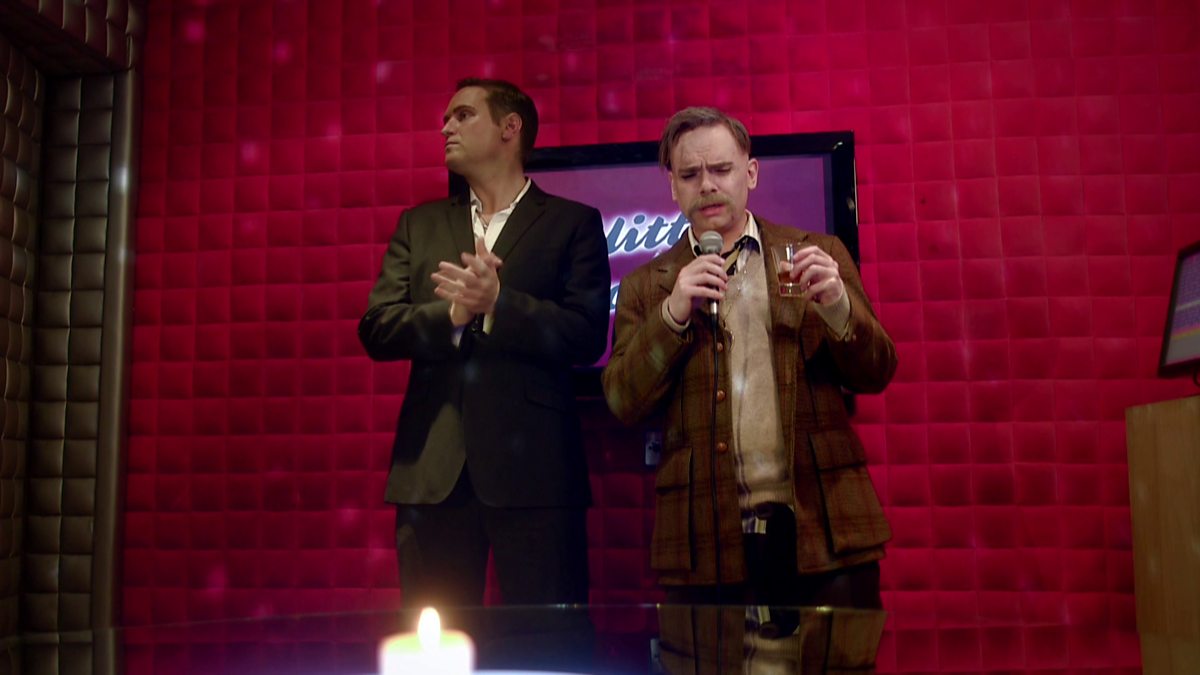 Biscuity Boyle is happy with a little karaoke on a Saturday night