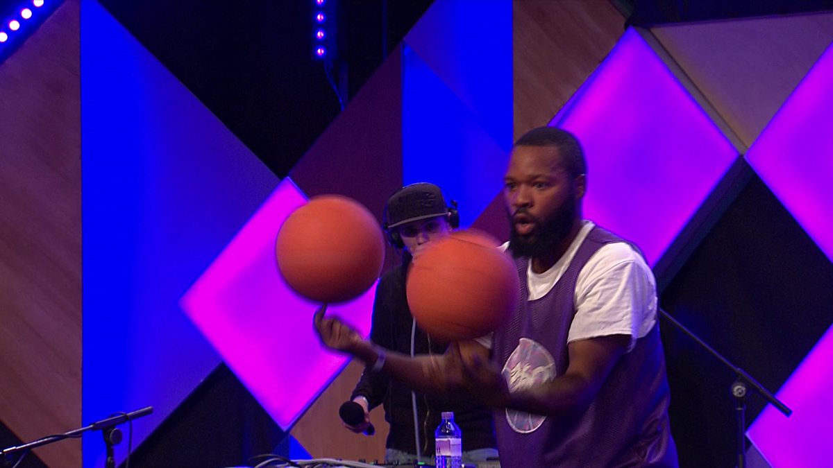 Basketball Man from 360 Allstars performs an amazing spinning stunt