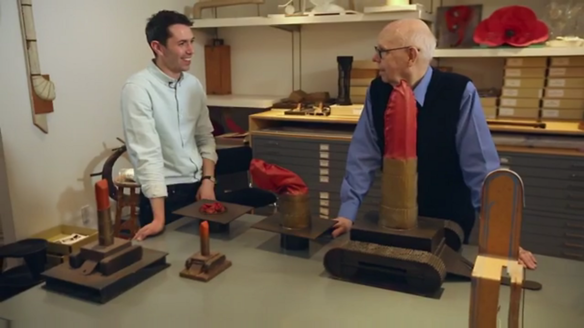Alastair Sooke meets Claes Oldenburg, renowned for his witty, outsized street sculpture, who demonstrates one of his most memorable pieces – his giant inflatable lipstick