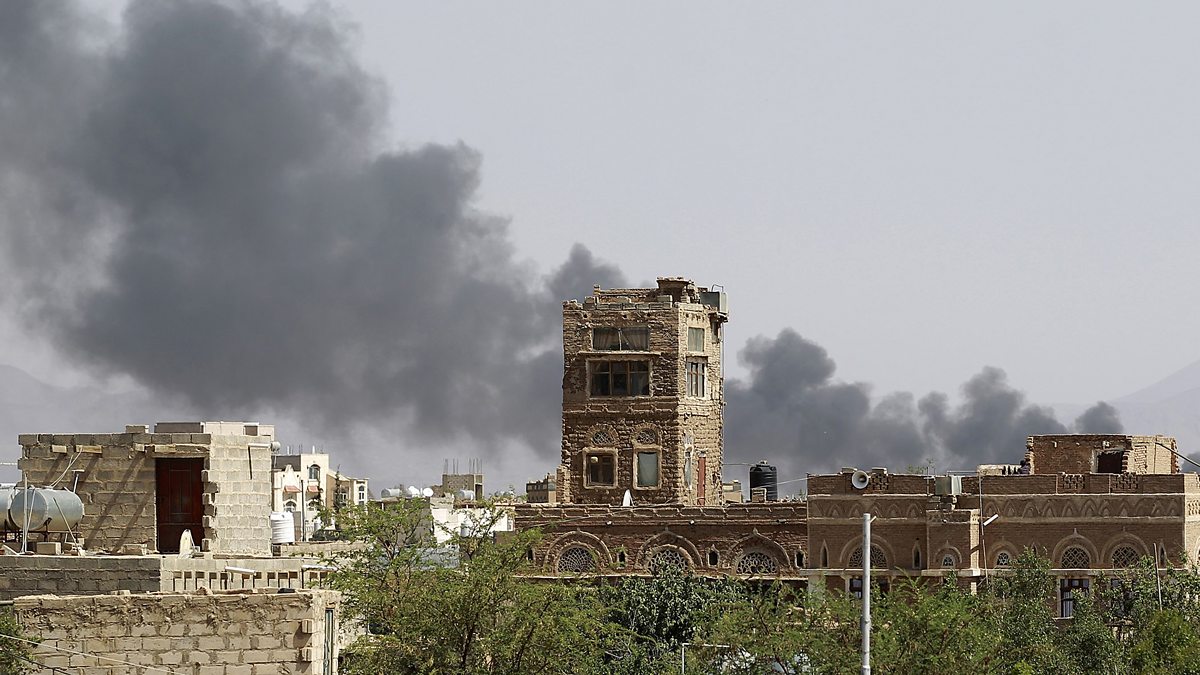 (Picture: Smoke from an air strike on Sanaa, Yemen.