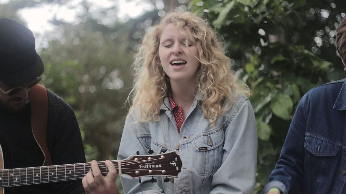 Hannah yn recordio sesiwn unigryw ym Mhortmeirion gyda’i band.