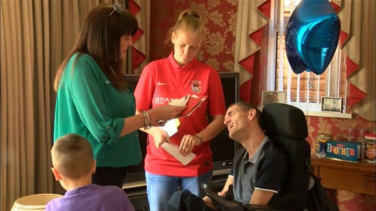 Dean Wykes from Coventry receives hundreds of birthday cards after social media campaign. Dean has Cerebral Palsy and his family wanted to make his day something to remember.