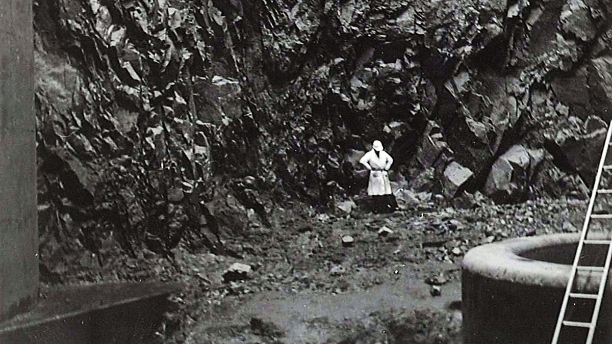The film is made from colour 35 mm film and black and white and colour stills from the 1960s - both official film and informal ‘family’ snapshots. It tells the story of the blasting out of the chamber inside the mountain, and the building of the power station, through the voice of an Irish labourer John Mulholland (played by the Irish actor Lalor Roddy). Mulholland is one of the few surviving witnesses to the heroic endeavour of tunnelling their way through the granite rock.