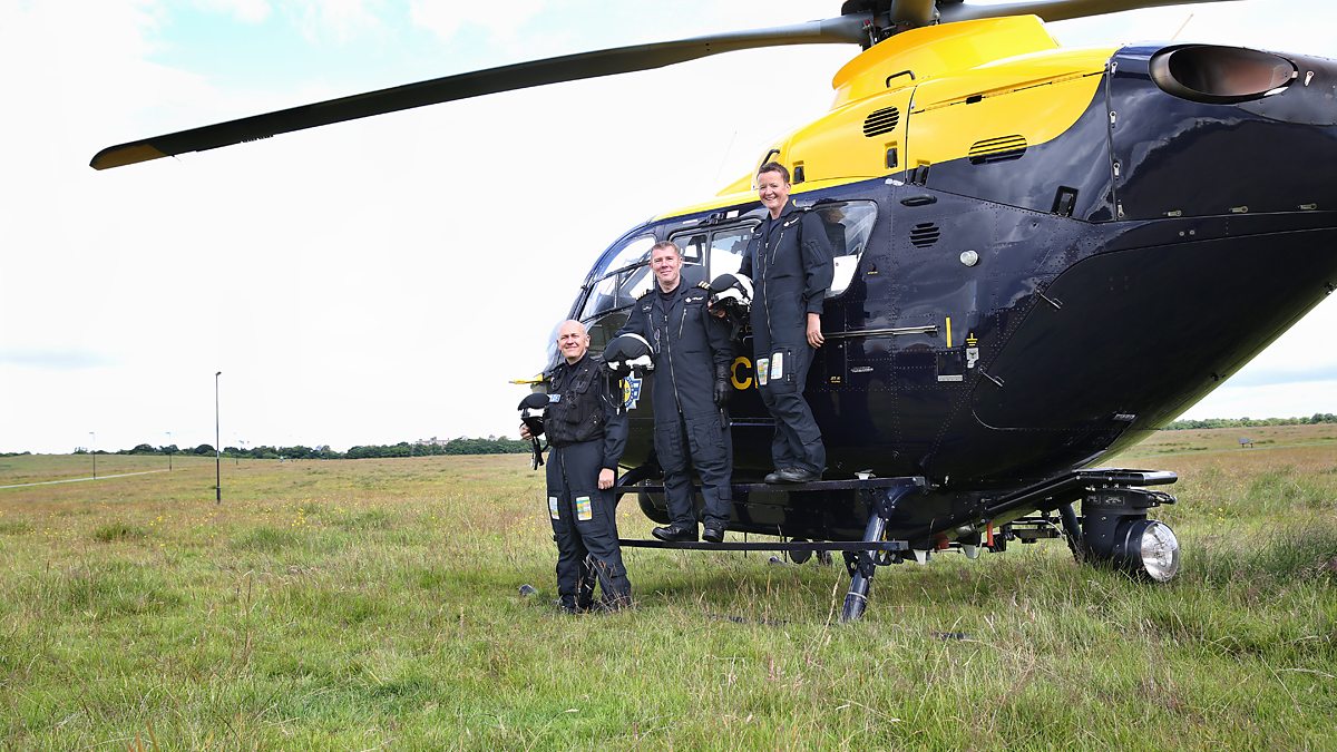 The blue and yellow police helicopter makes special use of the Town Moor's size as it purrs over the city.