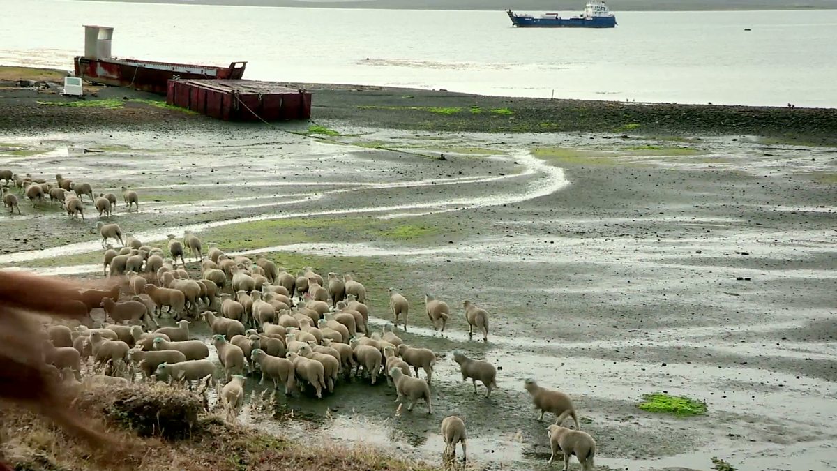 On Saunders Island the Pole-Evans family are getting ready to send their sheep off to market on the Concordia Ferry.