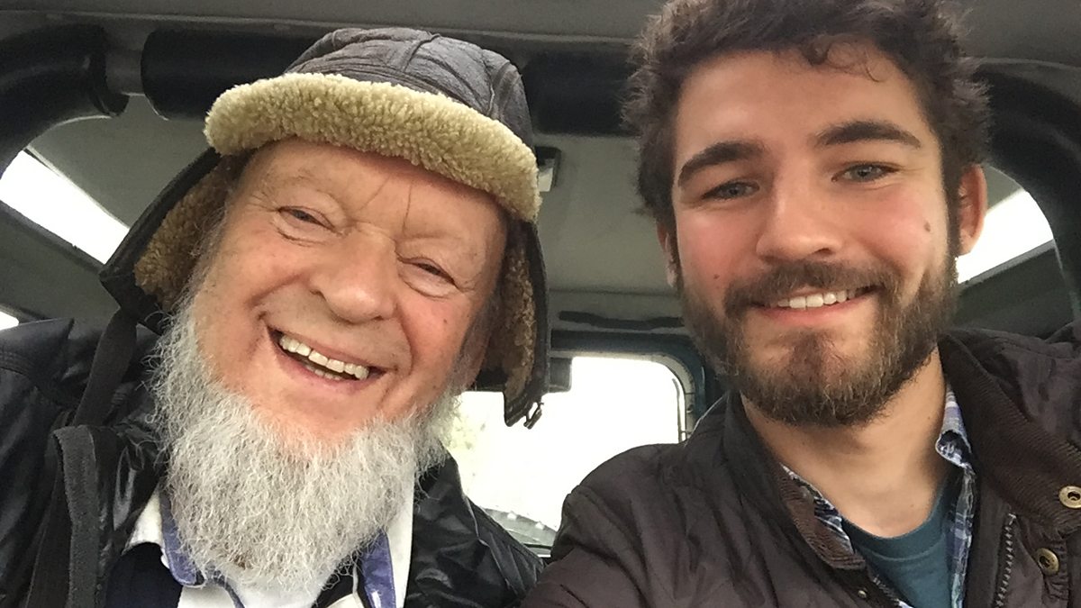 12/12/2015 Michael Eavis takes Charlie for a ride on the old railway at Glastonbury Festival