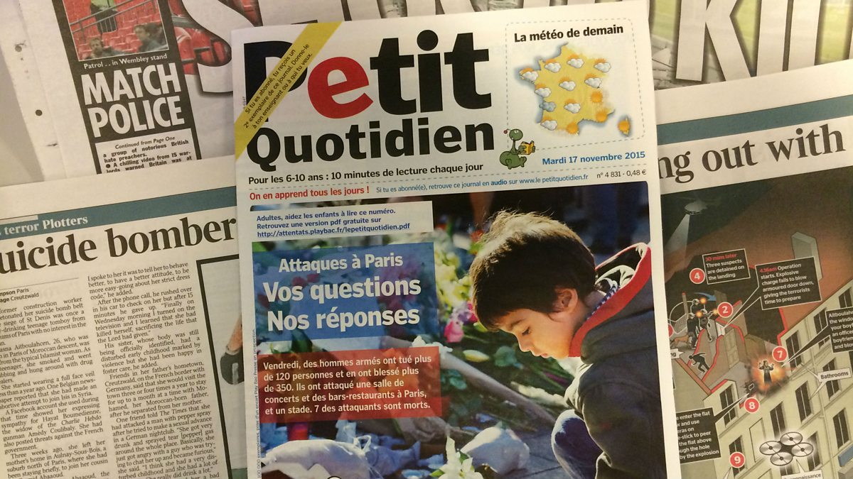'The adult world is ugly', says François Dufour, editor in chief of Le Petit Quotidien, a daily newspaper for children. 'It's important to tell the truth and give facts'.
