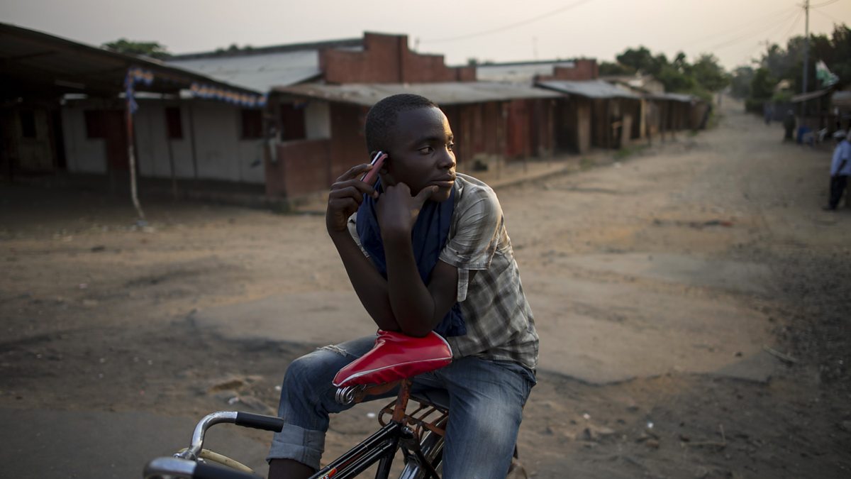 (Picture: Cyclist on his mobile phone in Burundi; Credit: Phil Moore/AFP/Getty Images)