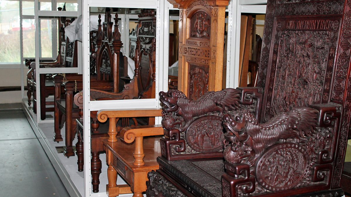 John Hardy yn ymweld â chasgliad dodrefn Sain Ffagan Amgueddfa Werin Cymru.
