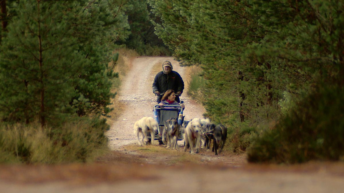 Sarah goes to work for the day with professional Sled Dog racer, Alan Stewart in the Cairngorms. As well as feeding the pack of dogs she also joins them on a six-mile training run through the forest.