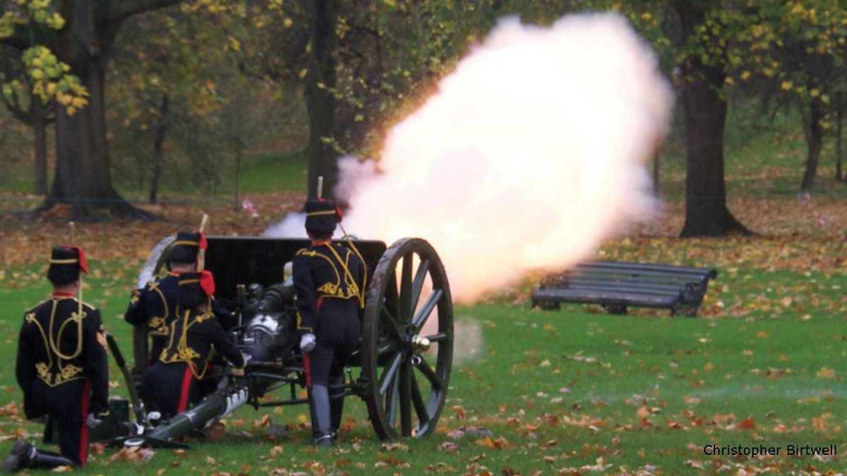 Honorary Colonel Matthew Sykes of The King's Troop describes a Royal salute in London's Green Park for Prince Charles' birthday.