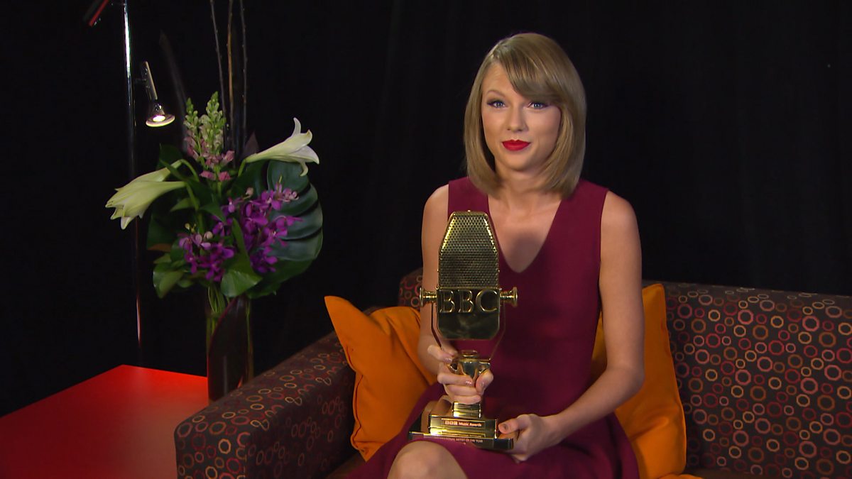 Taylor Swift wins the Best International Artist Award at the BBC Music Awards 2015.
