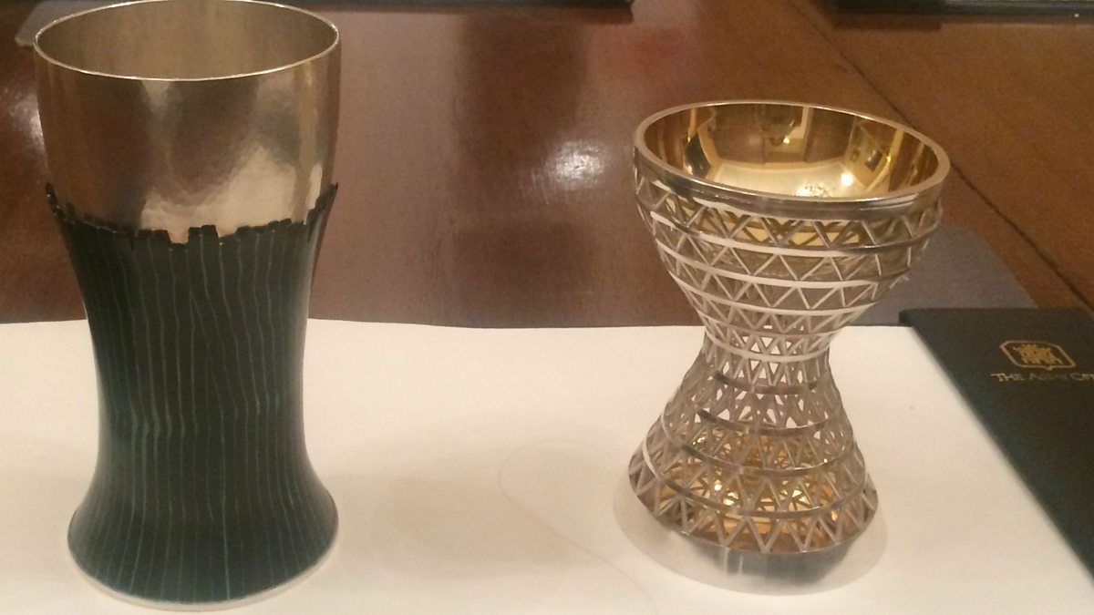 Award-winning silver goblets at the Assay Office in Edinburgh.