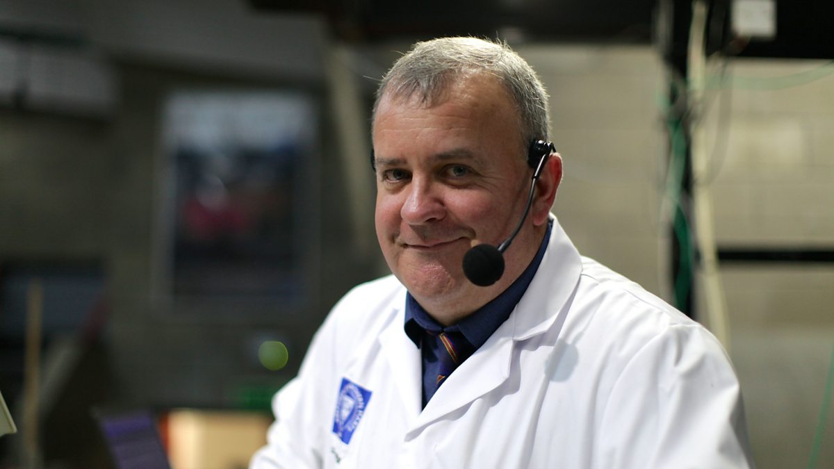 Sheep auctioneer, Colin Slessor gives thirteen year old farmer Joe McKenzie some last minute advice