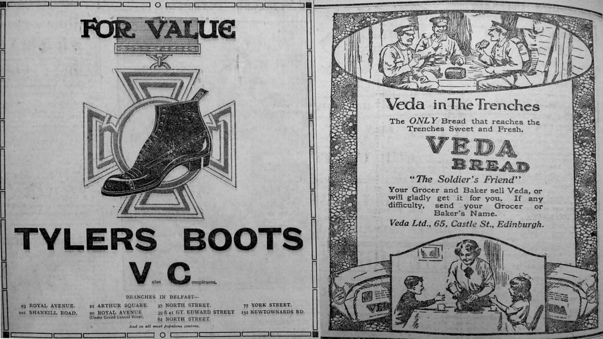 Advertising has never been known for its subtlety and has always used the times to sell products. This was also the case during the First World War where advertisers used the conflict to hawk their wares. Newspaper adverts would draw comparisons between common household products and the bravery of the men fighting at the front in ways that today we would find tasteless. Nigel Henderson takes a look at these adverts in the News Letter archives.