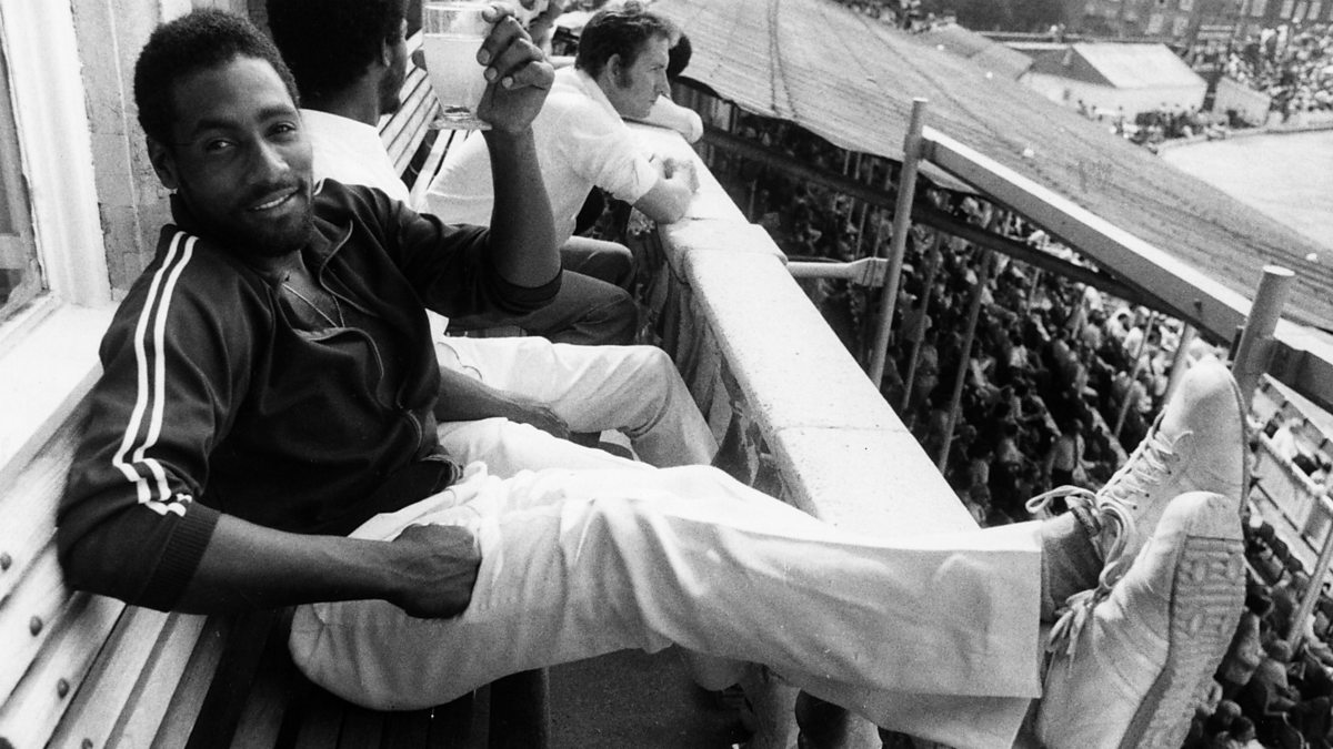 Photo:13th August 1976: Cricketer Viv Richards relaxes with a cold drink on the balcony at the Oval after his innings of 291for the West Indies in the final Test match against England.